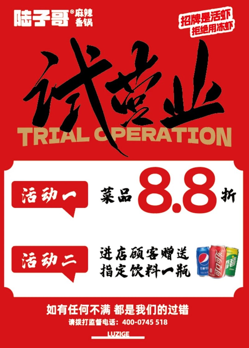 品牌升级后,我们坚持“活虾现送”的鲜、“明厨亮灶”的净、“不满意就退换”的诚;这次三店同庆,不管是新店试营业的新鲜体验,还是老店即将焕新的品质升级——只为让长沙人,花更少的钱,吃到更放心的热辣香锅。